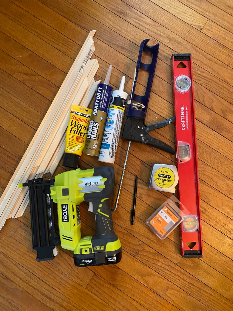 After two years of updating other parts of the house that needed attention first, it was now the doors turn! I went to Lowe’s Home Improvement and picked up some trim! I have linked the exact trim The other supplies I already had and hopefully you will too! If not I have them all linked below!