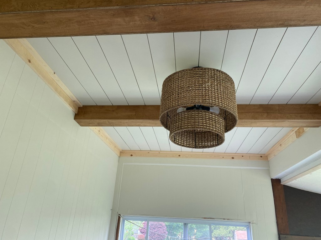 Last week I left off with installing my new DIY beams. Read my post here for a tutorial on how you can make beams on a budget for your own space!