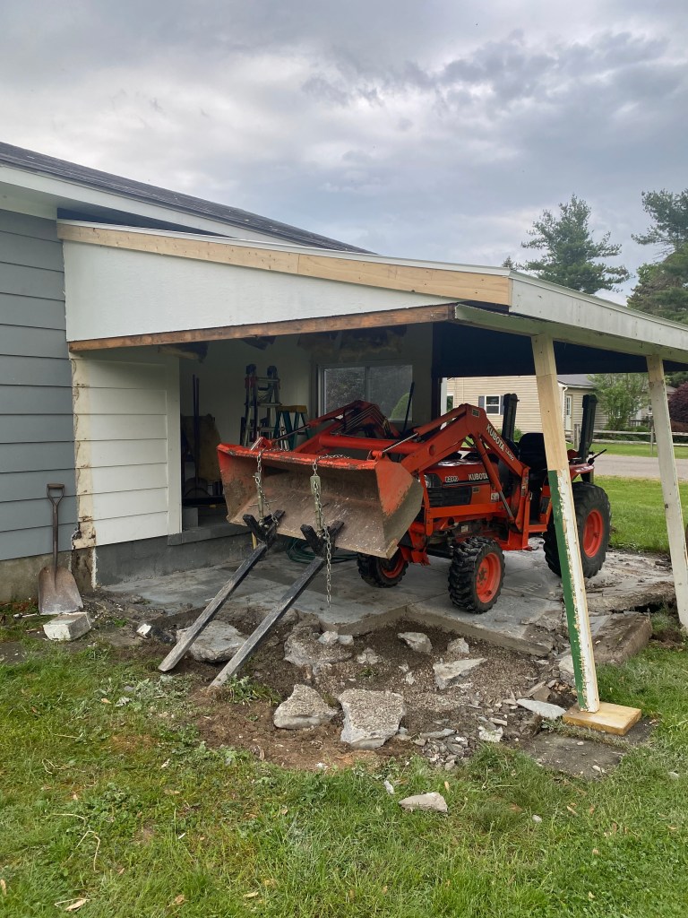 It needs to basically be re-done! It is a hot mess! So far they re-did the roof, started on the drip ledge, removed the windows and rotted studs, and started removing the concrete.