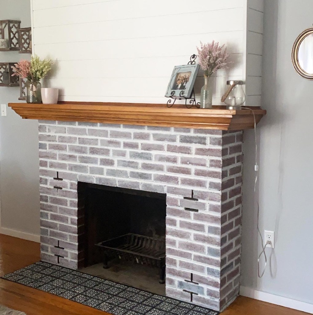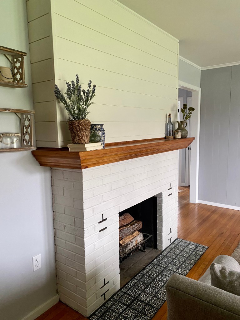 The solid white brick and matching white shiplap make me feel sooo much better about this space. It proves that the power of paint is so magical and cheap which is the best part!! This fireplace has really come such a long way. For similar projects and DIYs, follow me on Instagram @abbbclark_homeee !