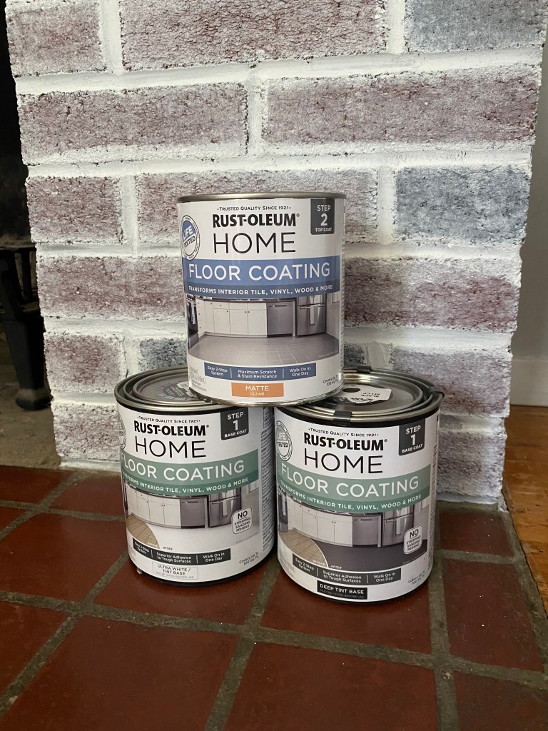 Now this was much better but still not great. I didn’t want to spend a boat load of money but it needed something else! The brown tiles were driving me crazy. Instead of completely removing the tiles and replacing them, I decided to stencil them. I used Rust-oleum Home’s floor coating paint that works on tile as well as a 4x4in stencil bought from amazon and got to work.
